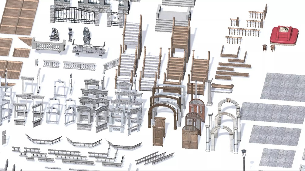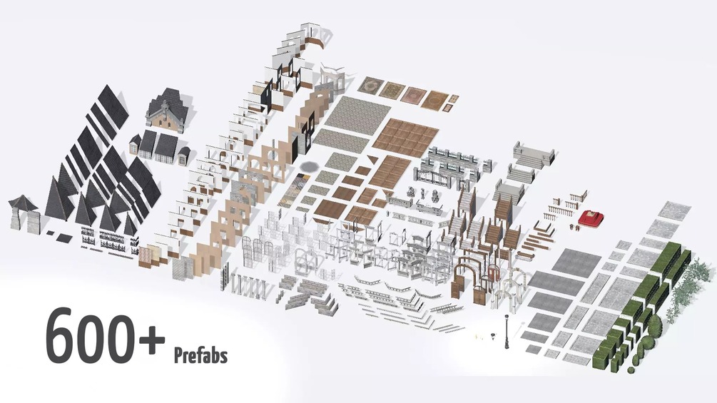 With this pack you can create a variety of multi story, multi design neighbourhood of burgeois mansions with interior walls, floors, ceilings & staircases.